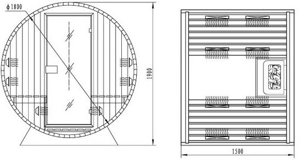 Баррель-сауна с комбинацией традиционной печи и инфракрасными нагревателями. Можно использовать как в помещении, так и на открытом воздухе. Поверхность дерева устойчива к атмосферным воздействиям, водонепроницаемая, защищена от УФ-лучей, от плесени. Устойчивая и безопасная. Стеклокерамические нагреватели.